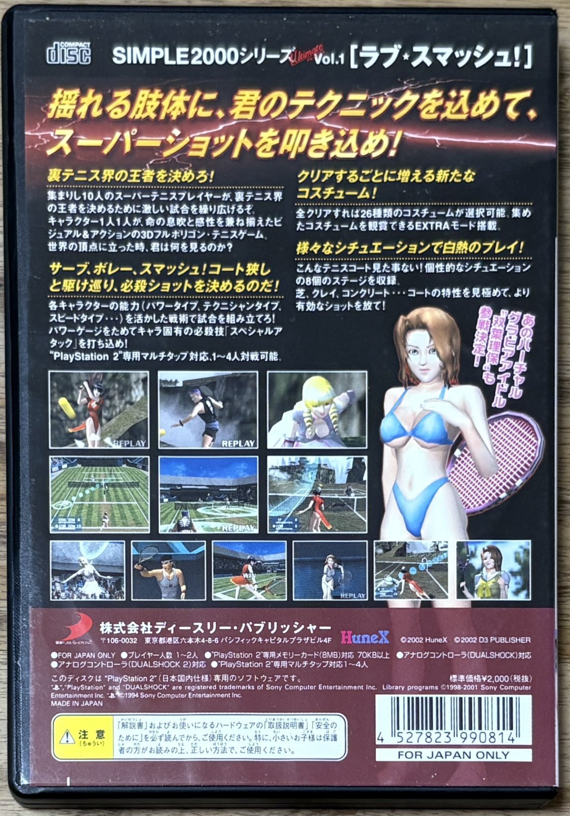 Love*Smash! Super Tennis Players (SIMPLE2000シリーズ Ultimate Vol.1 ラブ★スマッシュ!) is a sexy tennis game with outfits for almost any fetish. What could go wrong? Despite the sexiness it's not a bad tennis game underneath. No Japanese skill (or shame) is needed to enjoy this game.