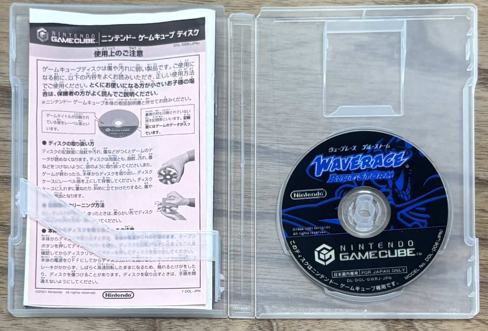 Wave Race: Blue Storm (ウェーブレース ブルーストーム) is the third and (to date) final game in the jet ski raving series Wave Race. Even though this is an early GameCube game it still looks good today especially the water effects. No Japanese needed to play.