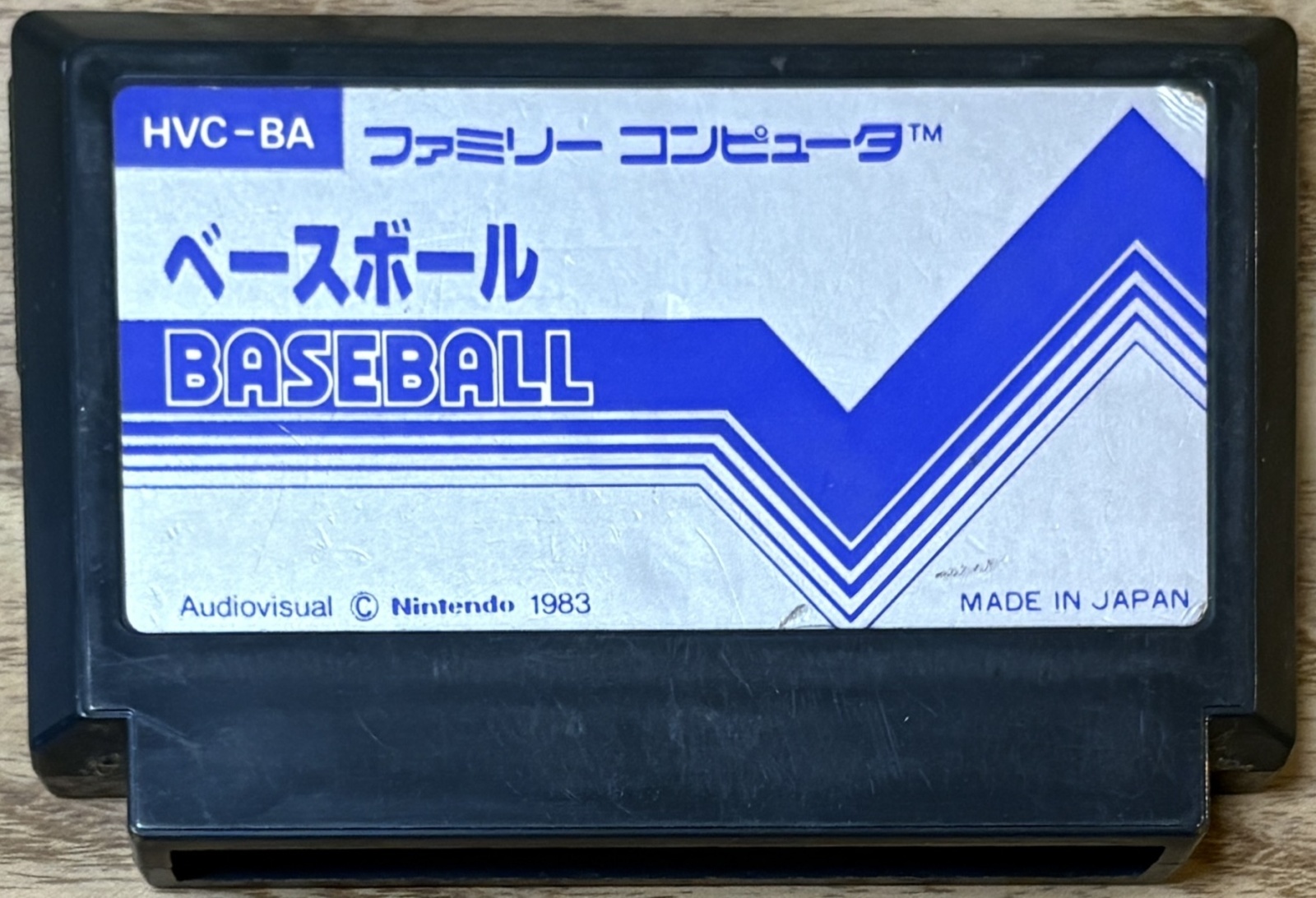 Baseball (ベースボール) is the original Baseball game on the Famicom. Produced by Nintendo. You can play without knowing any Japanese. This is a first print "Pulse cart" version.