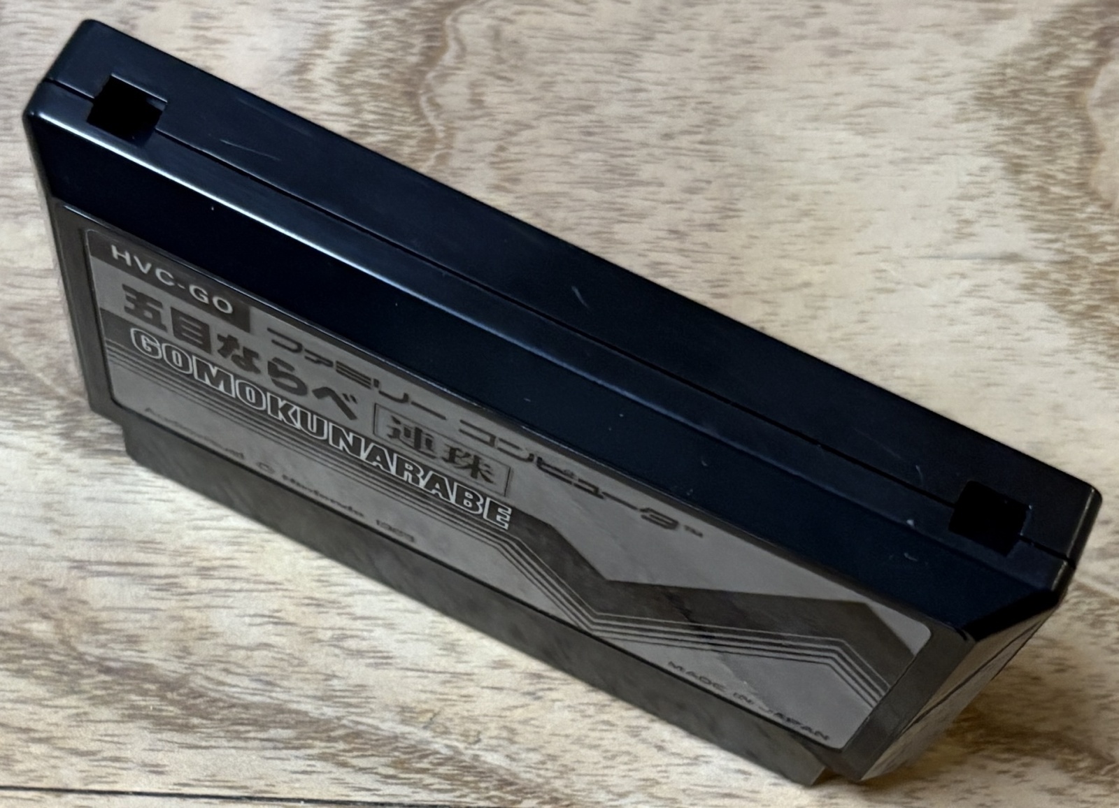 Gomoku Narabe Renju (五目ならべ 連珠) is a "get 5 in a row" board game. It's simple to figure out and pretty fun to play. This Japan exclusive was the 4th Famicom cart released and the first game to be resigned specifically for the console (the first 3 games were ports of older Nintendo arcade games). This is the first print "Pulse Cart" version.