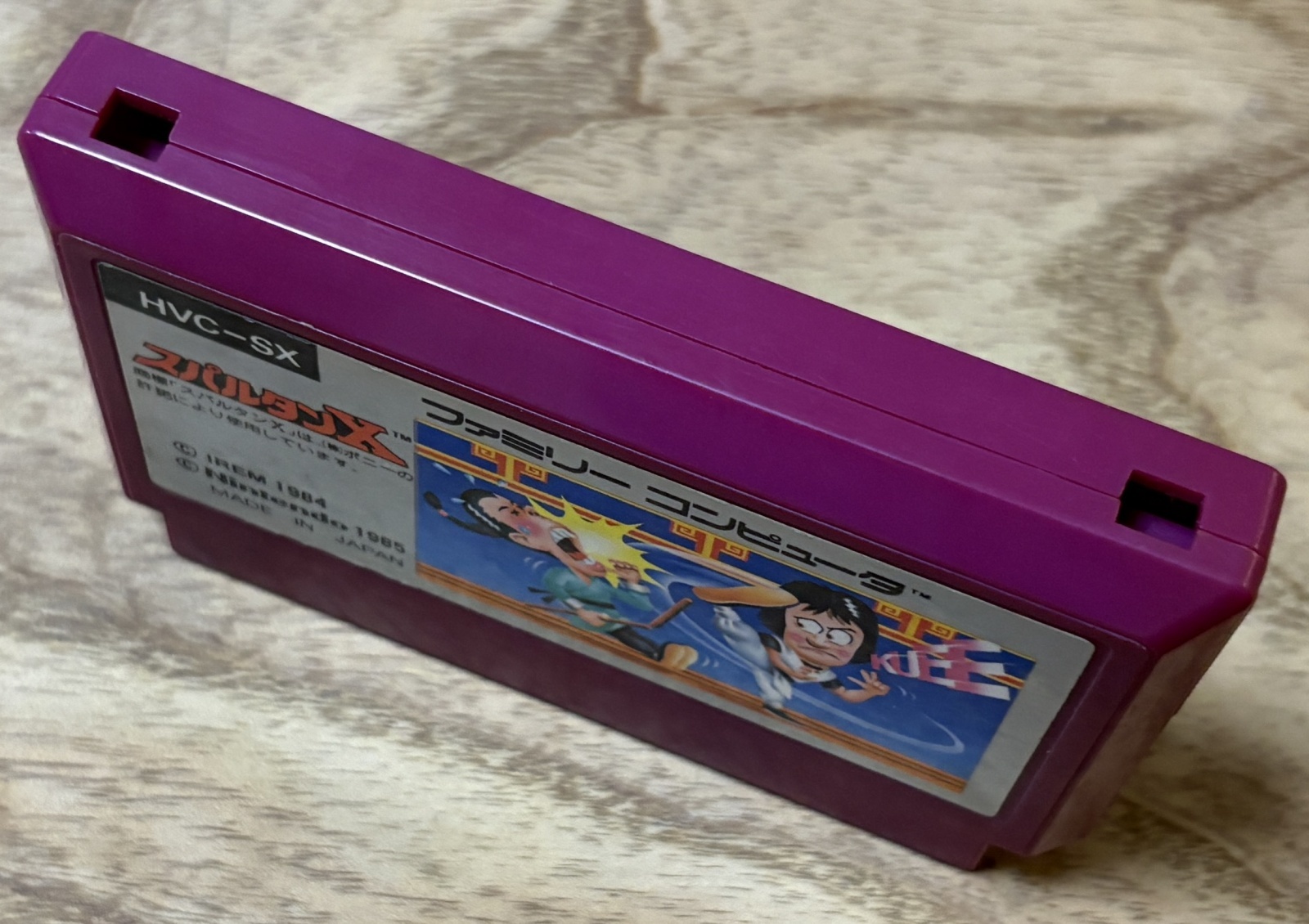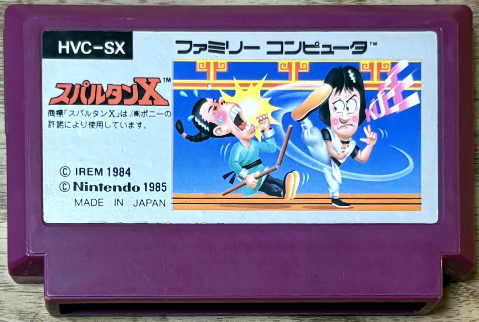 Kung-fu / Spartan X (スパルタンX) is one of the Famicom's most beloved titles and one of my favorite games as a kit. It is a fairly simple side scrolling fighter but I still enjoy it a lot today. The Japanese title is based off a popular Jackie Chan movie of the time. It was called simply Kung-Fu or Kung Fu Master outside of Japan. No Japanese needed to play.