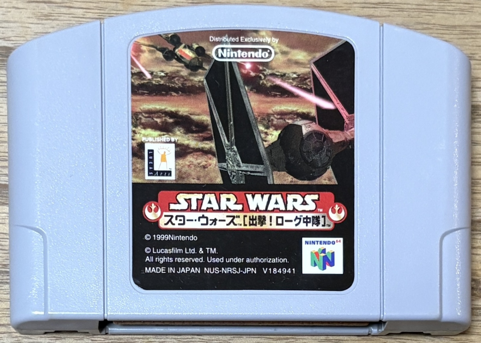 Star Wars: Rogue Squadron (スターウォーズ 出撃!ローグ中隊) is a aerial combat shooting game with breathtaking graphics for an N64 game. Excellent game for Star Wars fans. Voice acting is all in English with Japanese subtitles. Supports the N64 expansion pak.