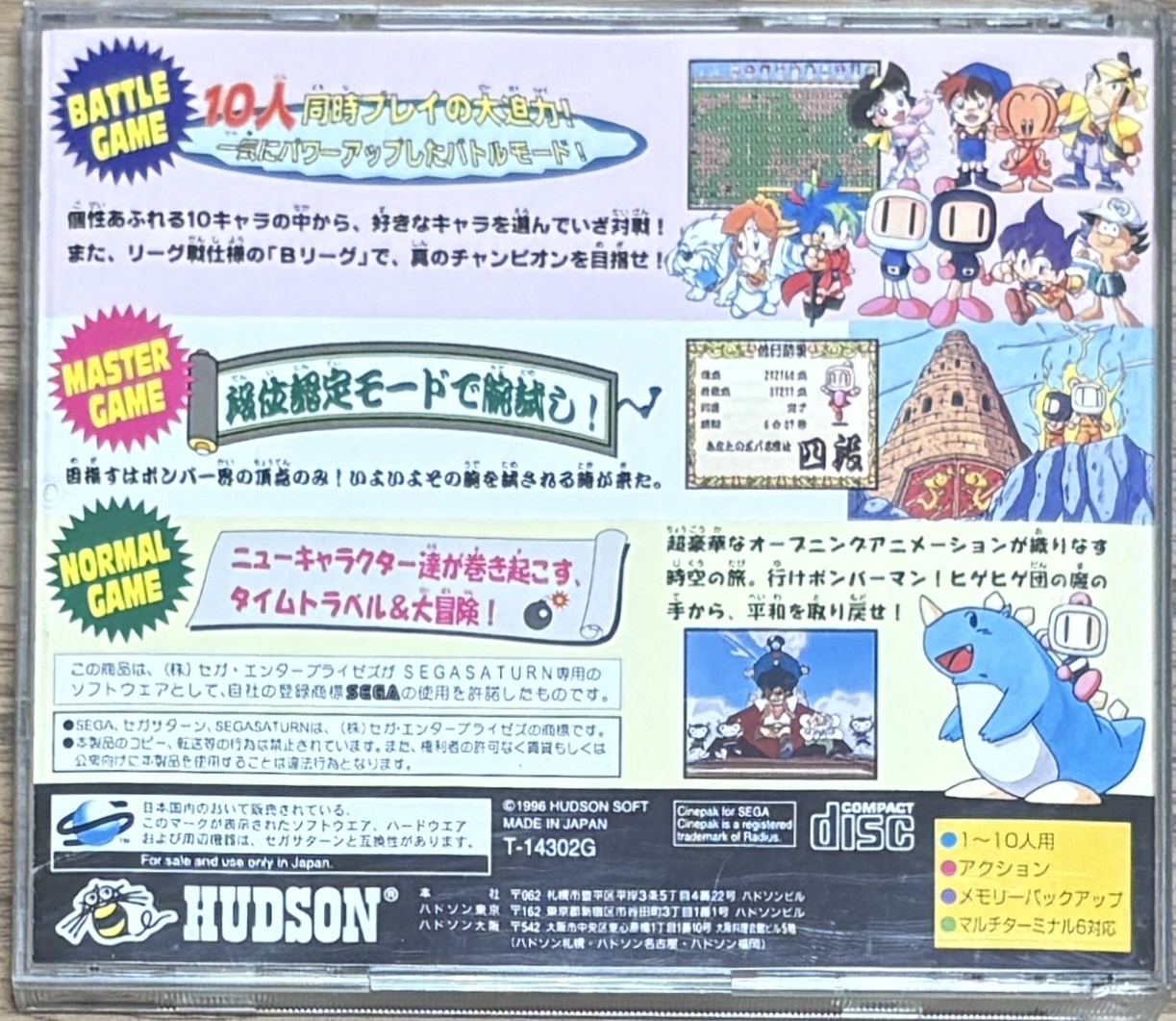 Saturn Bomberman (サターンボンバーマン) is not only my favorite Bomberman game but it is also one of my favorite games of all time. It is the perfect 2D Bomberman. Up to 10 players. Ride-able dinosaurs. Fully animated cutscenes. A must for any Saturn gamer. No Japanese needed to play.