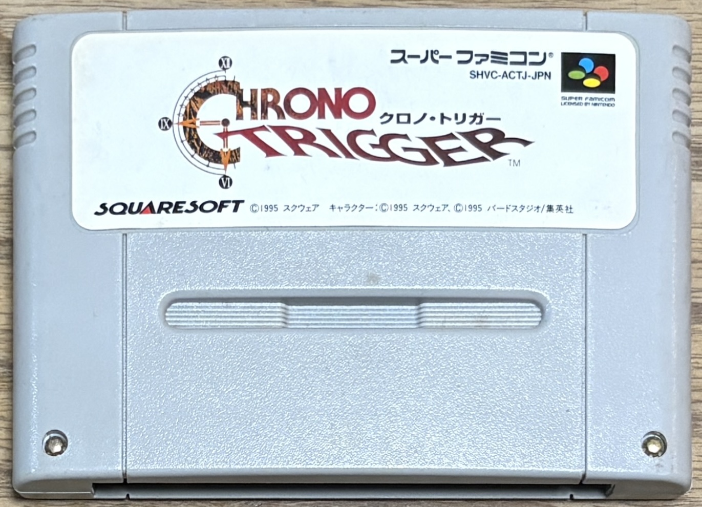 Chrono Trigger (クロノ・トリガー) is considered an absolute classic of the RPG genre and is considered one of the best 16-bit (or any bit really) RPG games ever made. It was done by the dream team of Final Fantasy's Hironobu Sakaguchi, Dragon Quest's Yuji Horii (on "loan" from Enix where he usually worked at the time) and Akira Toriyama the artist behind the iconic characters and monsters of Dragon Quest and the Manga Dragon Ball. Music was by Yasunori Mitsuda with contributions from Nobuo Uematsu. And the game lives up to it's pedigree.