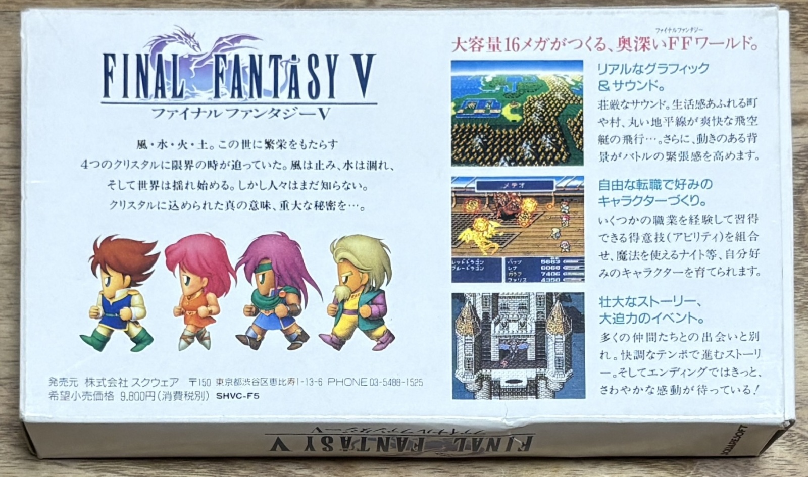 Final Fantasy V (ファイナルファンタジーV) is the only Super Famicom Final Fantasy game not released on the Super Nintendo in the West. Great game with great characters and music.