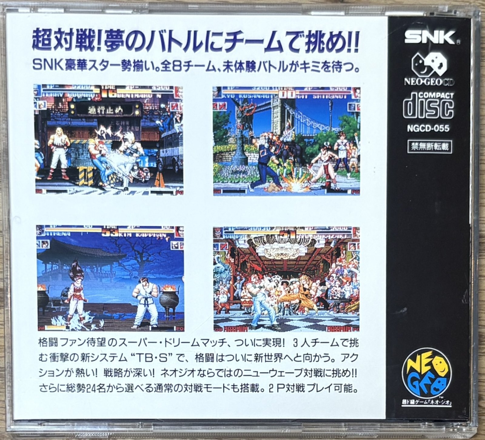 The King of Fighters '94 (ザ・キング・オブ・ファイターズ94) is the first game in the yearly KOF series that started with Fatal Fury (and Art of Fighting). It is a mash up fighter and an absolute classic. No Japanese needed to play.