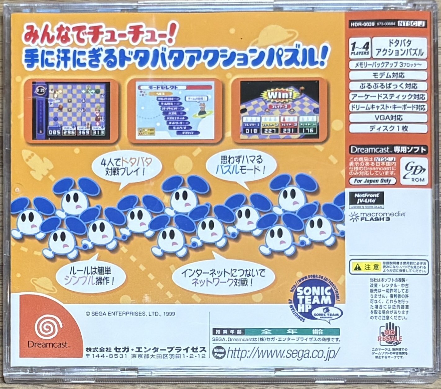 Dreamcast games will be wrapped in a removable plastic sleeve and then placed in a bubble wrapped mailer for shipping. Please remember, the games will ship from Japan so please allow some additional shipping time. Also during Japanese postal holidays (New Year's, Golden Week, Obon) orders will be delayed while the post office is closed.