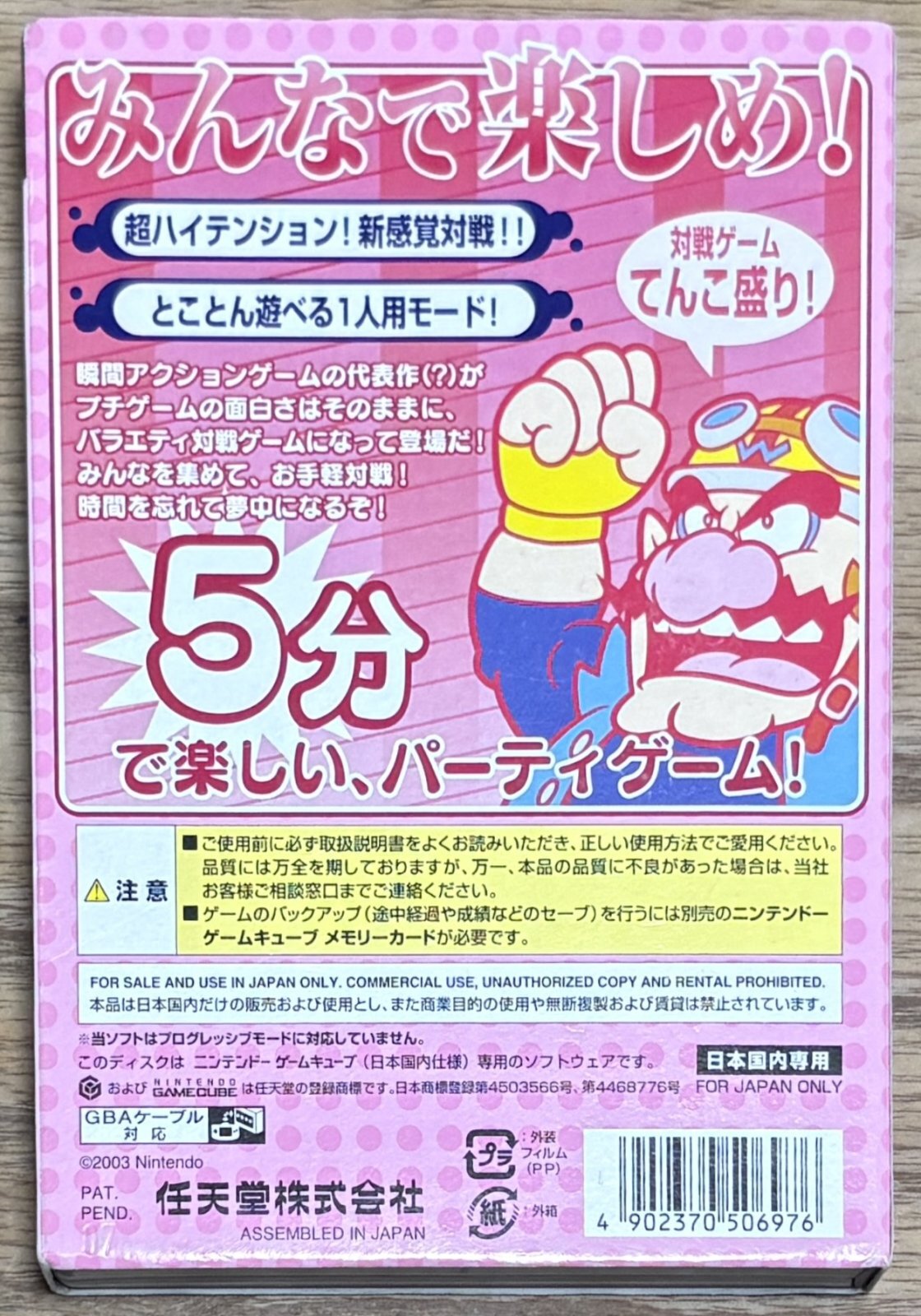 Atsumare!! Made in Wario (あつまれ!!メイド イン ワリオ) is the GameCube semi-sequel to the GBA classic. Many of the game from the GBA version were recycled but the game has new party and multiplayer modes. No Japanese needed to play.