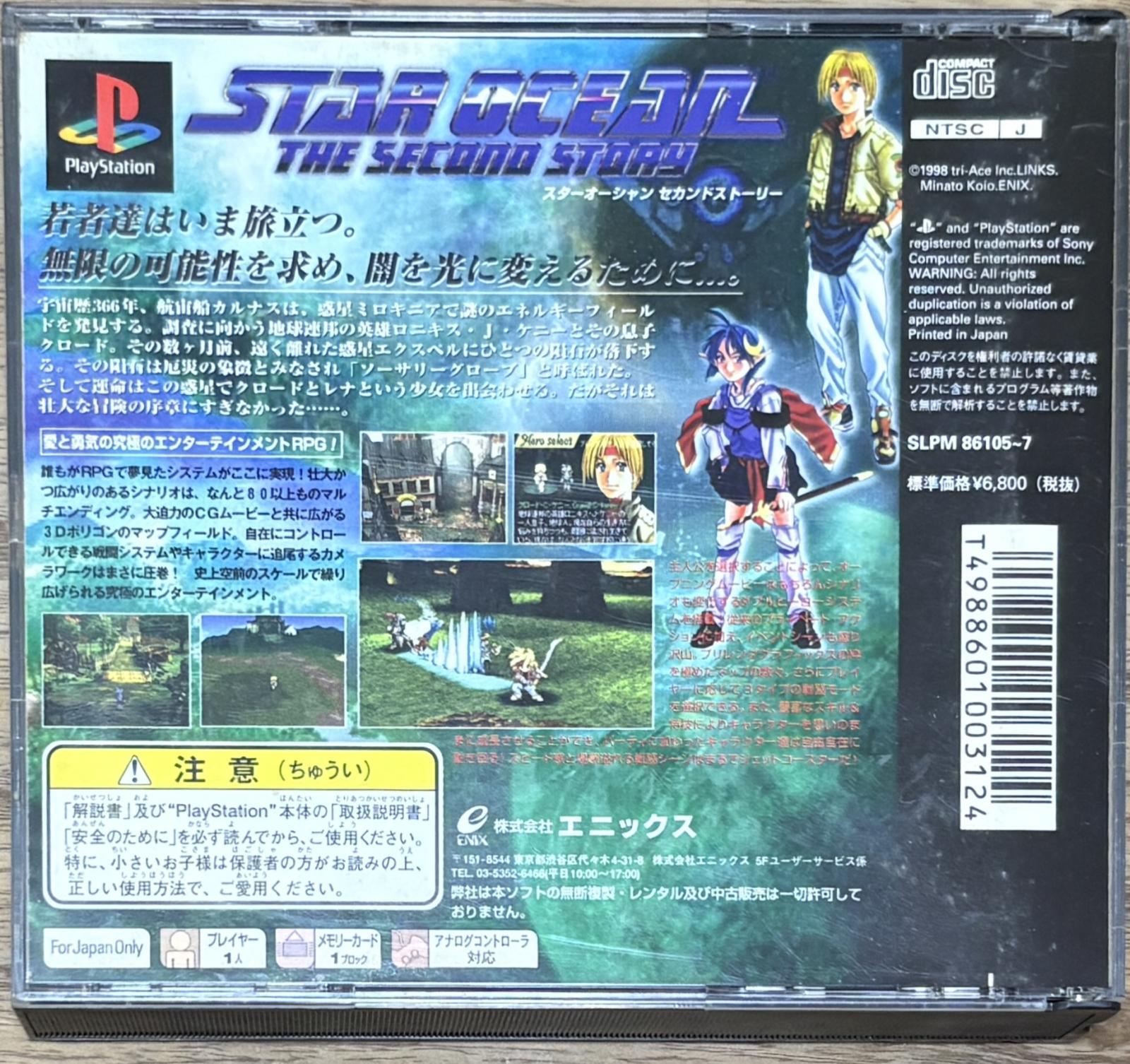 Star Ocean: The Second Story (スターオーシャン セカンドストーリー) is the 2nd Star Ocean game and the first on a CD format. Excellent fantasy sci-fi RPG blend.