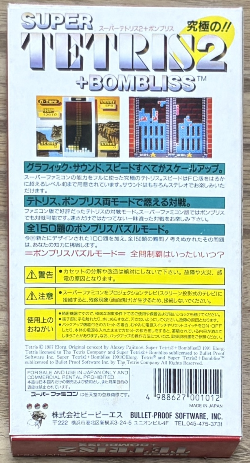 Super Tetris 2 + Bombliss (スーパーテトリス2+BOMBLISS) [Boxed]
