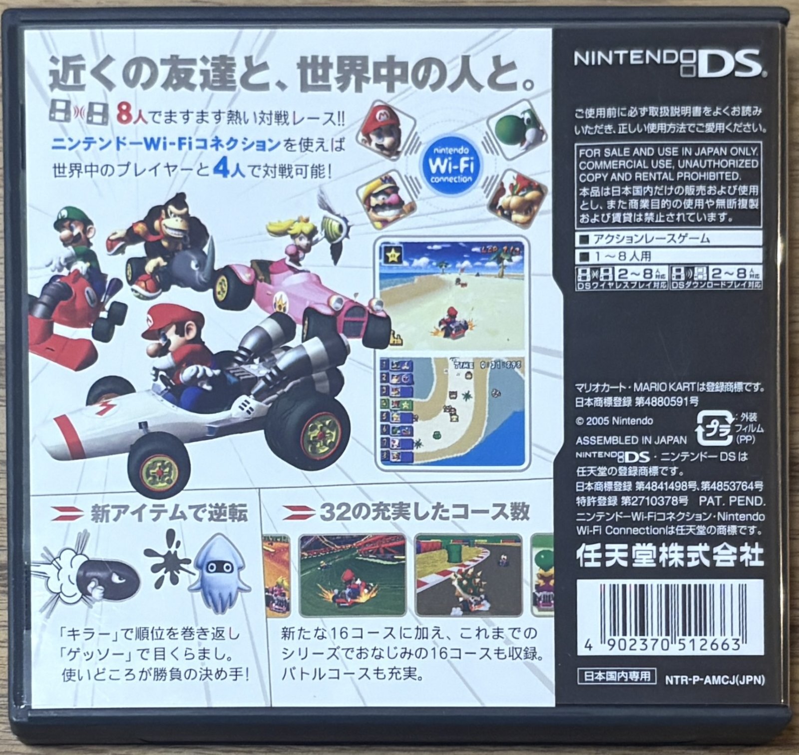 Mario Kart DS (マリオカートDS) is the 2nd portable installment of the classic Kart racing game. No Japanese needed to play.