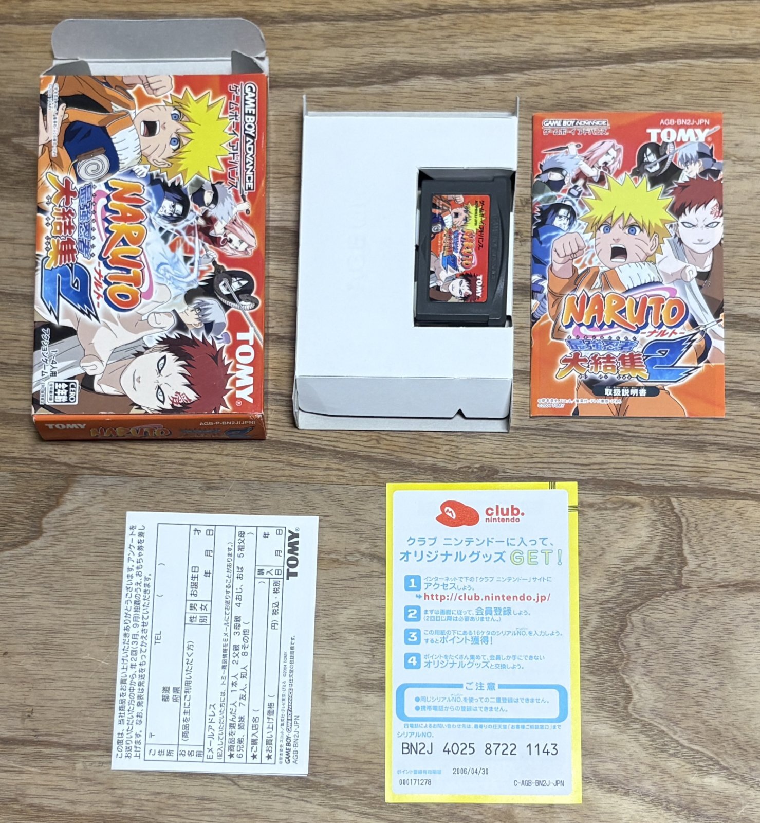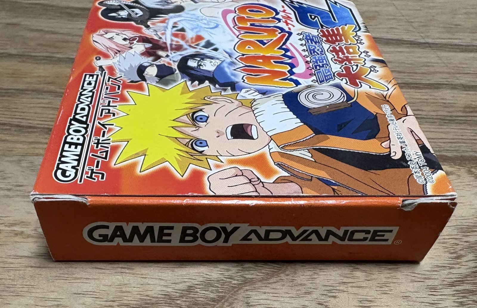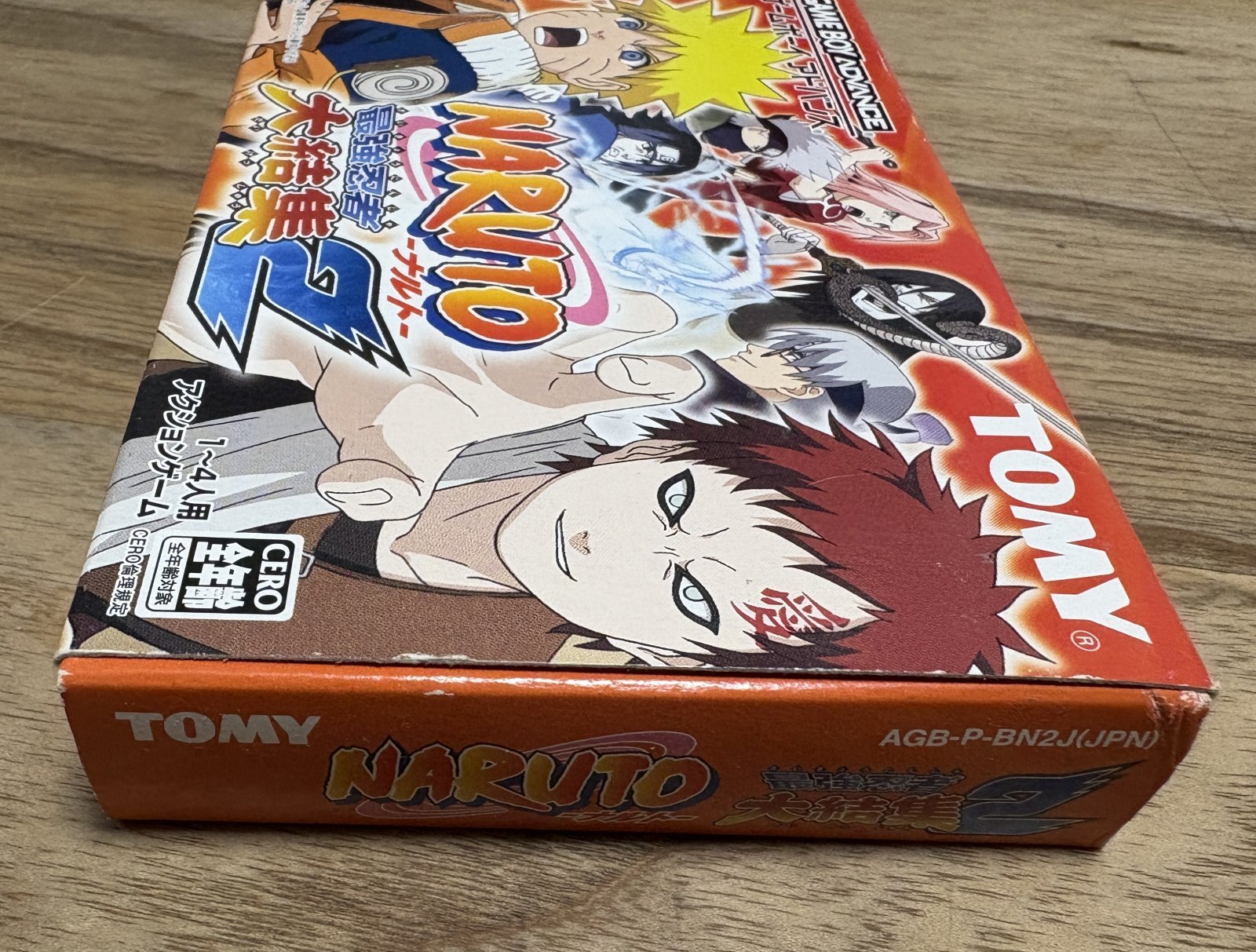 Naruto Saikyou Ninja Daikesshuu 2 (NARUTO-ナルト- 最強忍者大結集2) is an action beat em' up for the GBA based on the Naruto anime series. All the text is in Japanese but the game itself is action and does not require any Japanese skill to play. Also if you are familiar with Naruto you can figure a lot of it out.