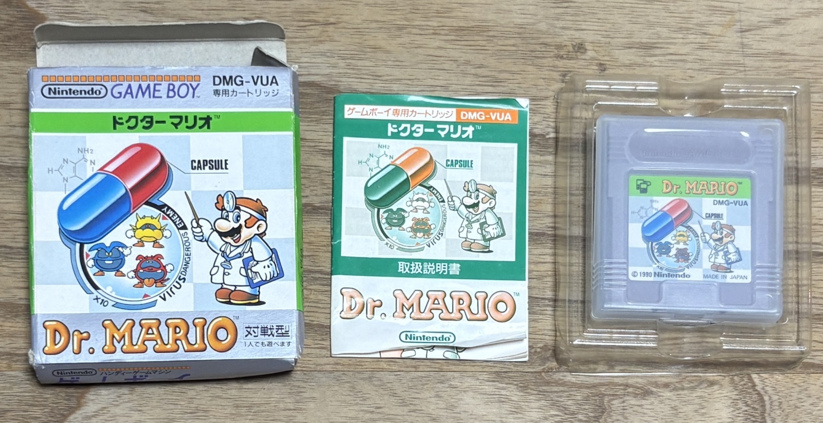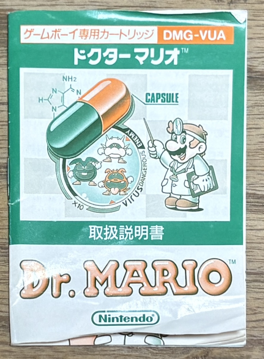 Dr. Mario (ドクターマリオ) is the classic pill-popping, virus busing game featuring everyones favorite plumber.. err Doctor? Meh. I trust him. One of the very few video games my wife likes. Don't laugh. She can probably kick your butt. No Japanese skill is needed to play this game.