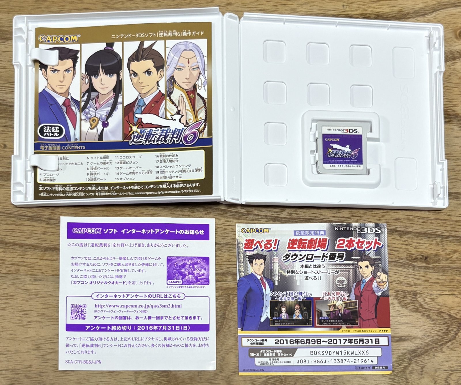 Phoenix Wright: Ace Attorney – Spirit of Justice / Gyakuten Saiban 6 (逆転裁判 6) is the 6th (and as of 2026) last mainline game in the fantastic courtroom adventure series. I enjoyed this one a lot and felt it was a bit of a return to form for the series. Sadly the cart does not have English on it and the English version was download only outside of Japan so this is the only way to have a physical 3DS copy of this game.