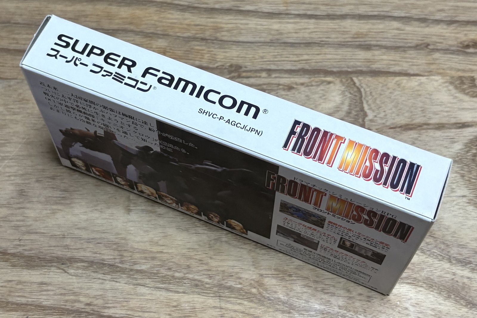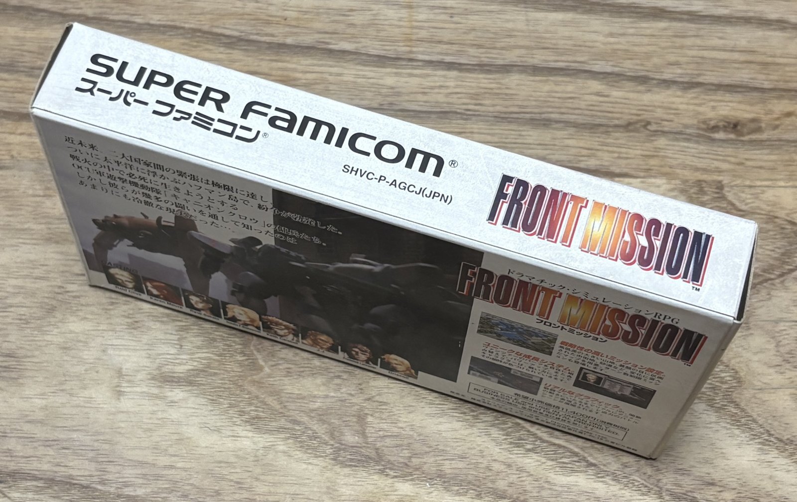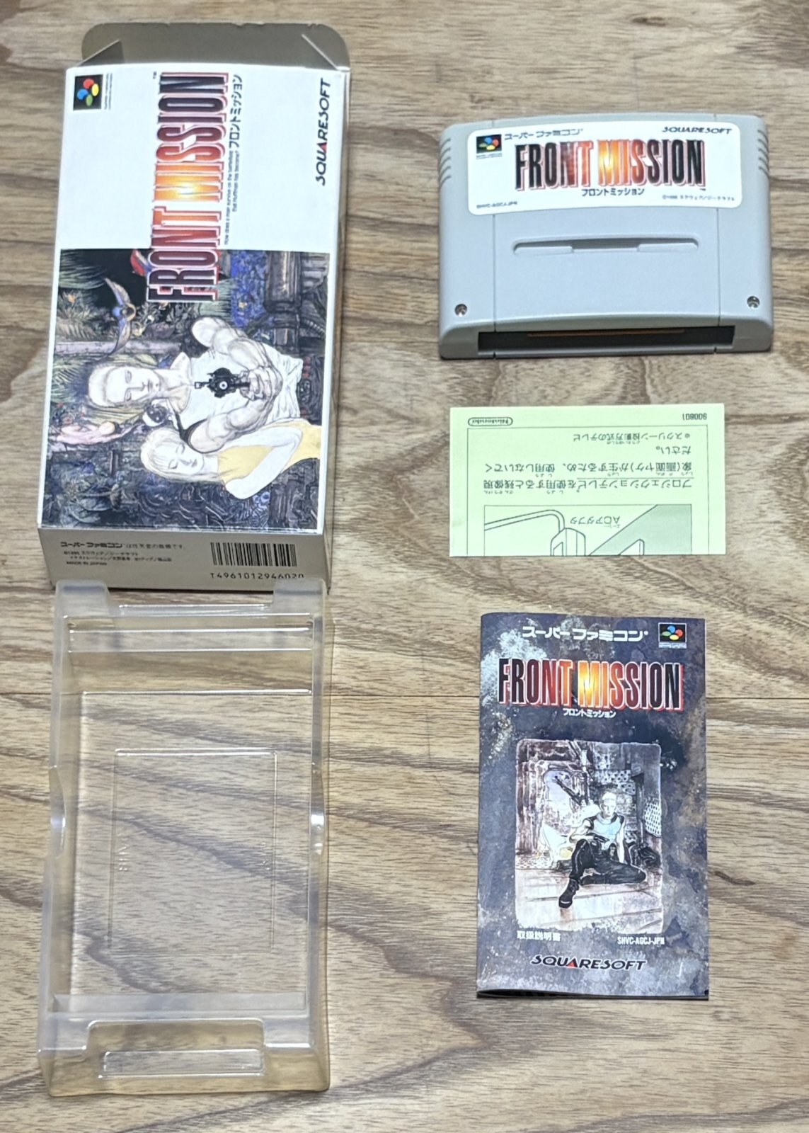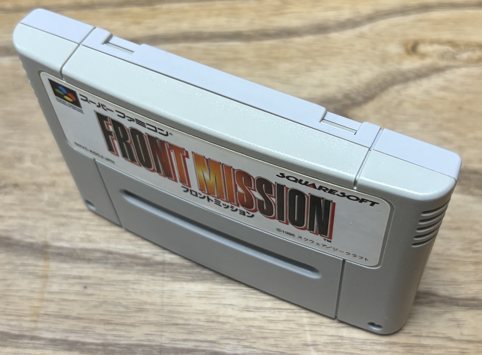 Front Mission (フロントミッション) is a Tactics RPG by Square set in a bleak futuristic world of warfare and walking tanks. The gameplay could be compared to something like Advance Wars. This game was a huge hit in Japan and spawned may sequels. The game is playable by non-japanese speakers by using the following guides: https://gamefaqs.gamespot.com/snes/562674-front-mission/faqs It's not very hard, a lot of the game menus and even some of the story is in English.
