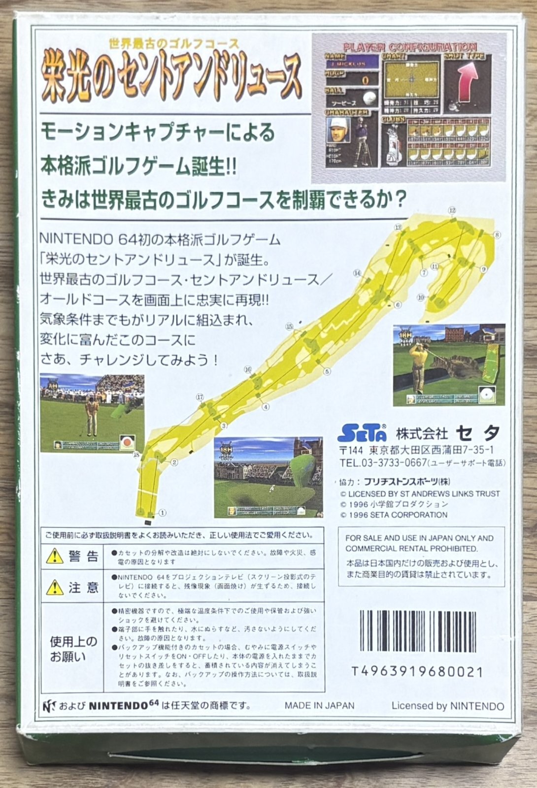 Eikou no St. Andrews (栄光のセントアンドリュース) is a realistic golf game for the Nintendo 64. No Japanese needed.