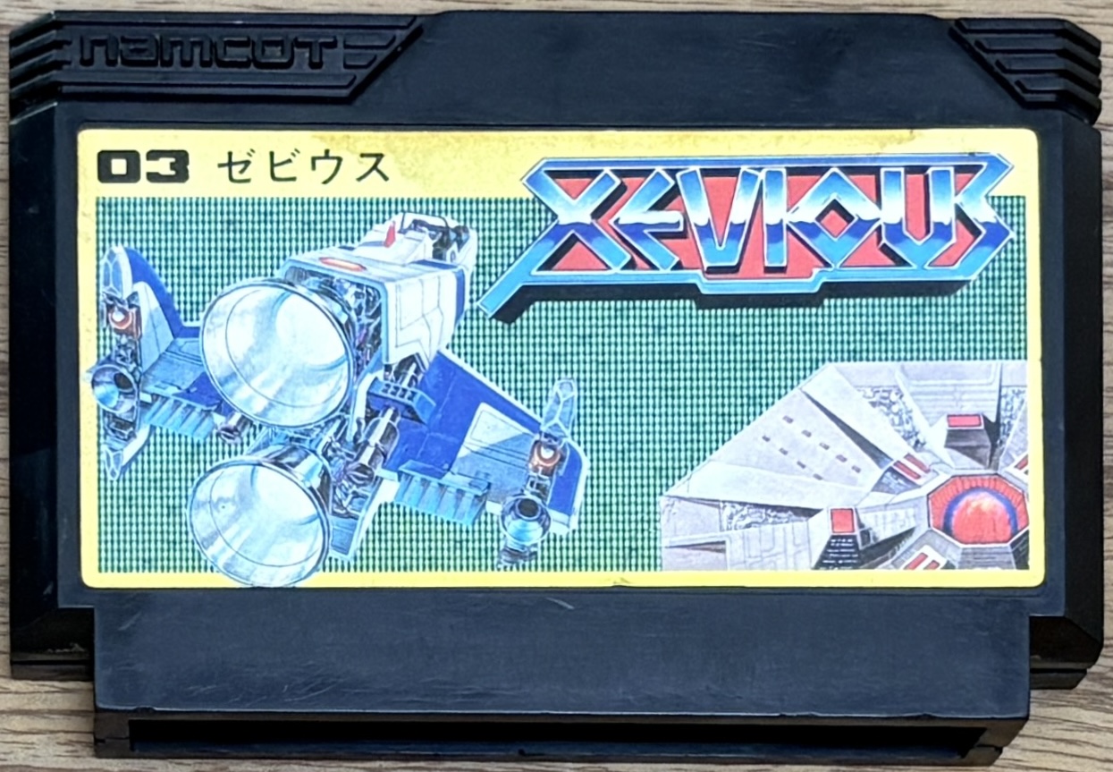 Xevious (ゼビウス) is an influential vertical shooter. It uses a mechanic of shooting airborne enemies like a standard Shoot em' up but also needing to pay action to and dispatch ground enemies. This Famicom port of the arcade original was a best-seller in Japan. No Japanese needed to play.