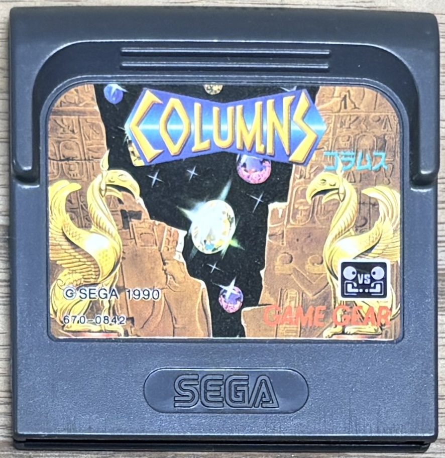 Columns (コラムス) is Sega's answer to Tetris. A signature (and very fun) falling blocks puzzle game. I consider it a must have for the Game Gear. No Japanese needed to play the game.