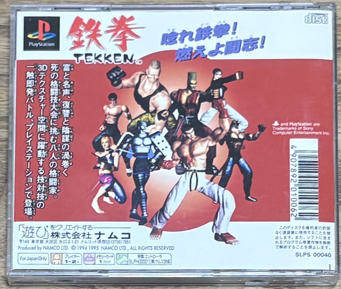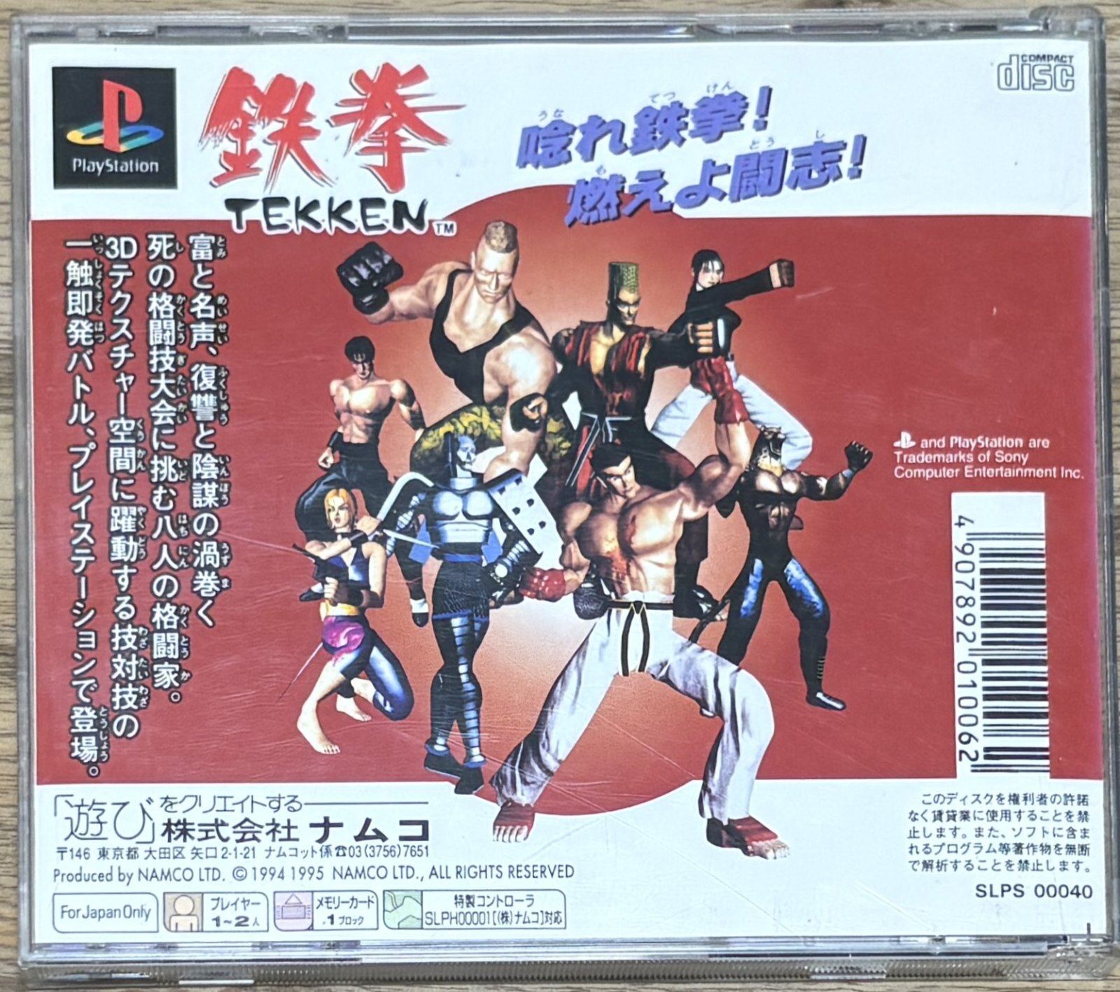Tekken (鉄拳) is the first game in the super popular 3D fighting game franchise that competed directly with SEGAs Virtua Fighter. No Japanese needed to play.